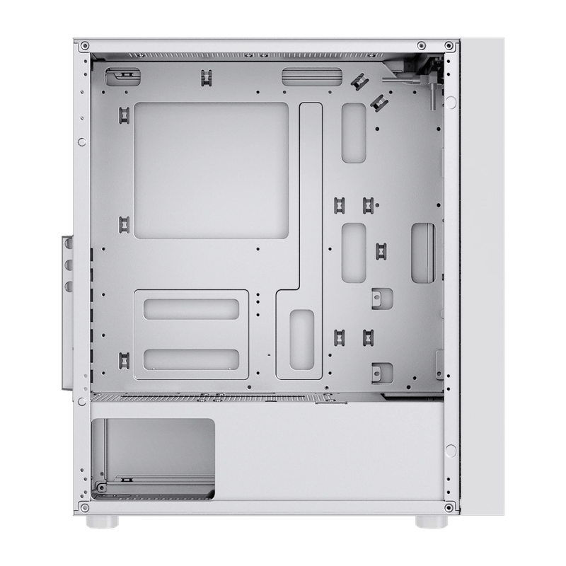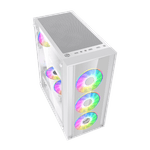 La refrigeración es esencial para un rendimiento óptimo, y este gabinete permite la instalación de hasta seis ventiladores, asegurando un flujo de aire eficiente. Además, incluye seis ventiladores ARGB que no solo mejoran la refrigeración, sino que también añaden un toque visual atractivo a tu setup. Estos FANS ARGB son controlados desde