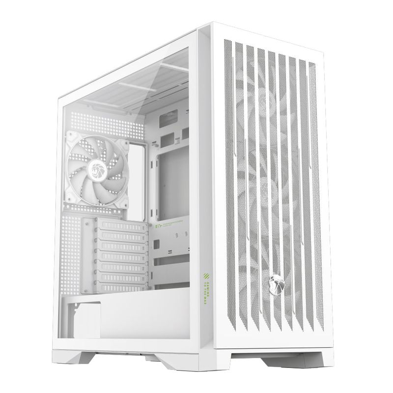 oDiseño inspirado en el león: Muestra audaces paneles de malla con marcas de garras, un panel lateral de vidrio templado e iluminación ARGB personalizable.