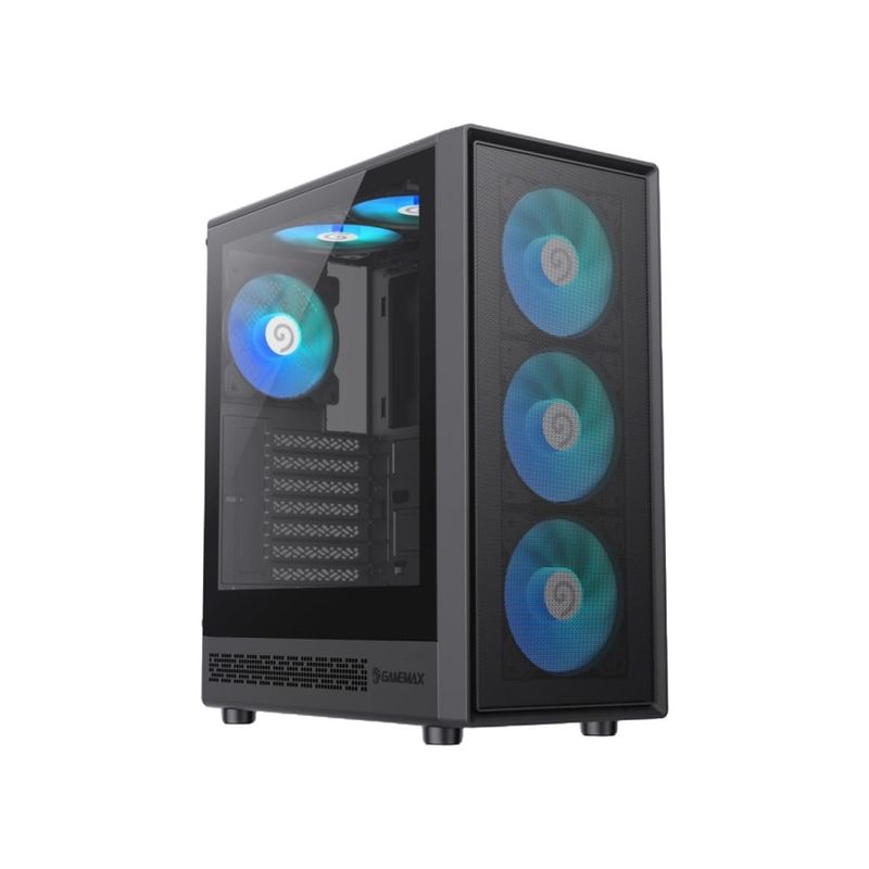 Storm 2 AB ATX Mid Tower PC Case de GameMax, que ofrece un amplio espacio para componentes de alto rendimiento en un diseño compacto.