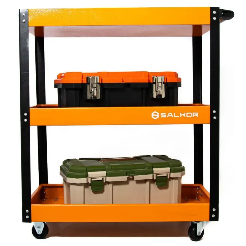 Carro porta herramientas robusto y funcional, ideal para organizar y transportar herramientas de forma práctica en talleres, garajes o espacios de mantenimiento. Su estructura de acero y sus ruedas facilitan la movilidad y el trabajo diario.