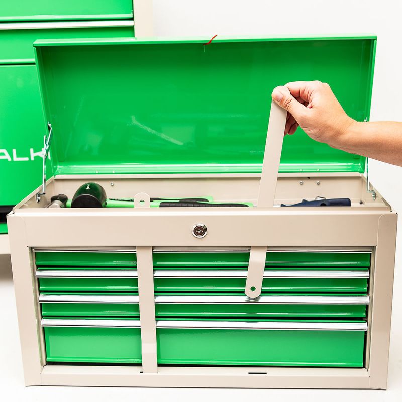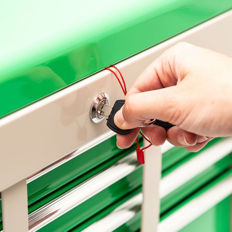 Las ruedas giratorias resistentes te permiten mover fácilmente el cofre de herramientas alrededor del taller, de modo que tus herramientas estén siempre a mano.