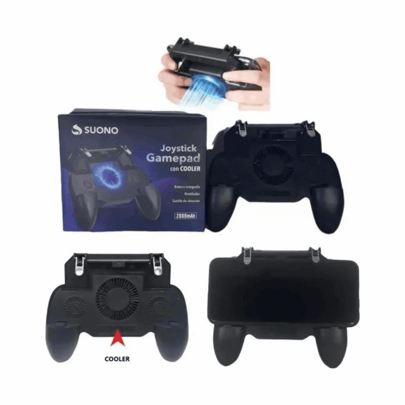 El Gamepad Suono GAM0019 transforma tu celular en una verdadera consola portátil, ideal para juegos de disparos, supervivencia y acción tipo Battle Royale. Su diseño ergonómico con gatillos físicos retráctiles, empuñadura de agarre firme y sistema de refrigeración con ventilador integrado, te brinda la ventaja táctica que necesitás para competir al máximo nivel.