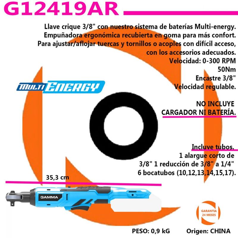 Llave crique 3/8" con nuestro sistema de baterías Multi-energy.