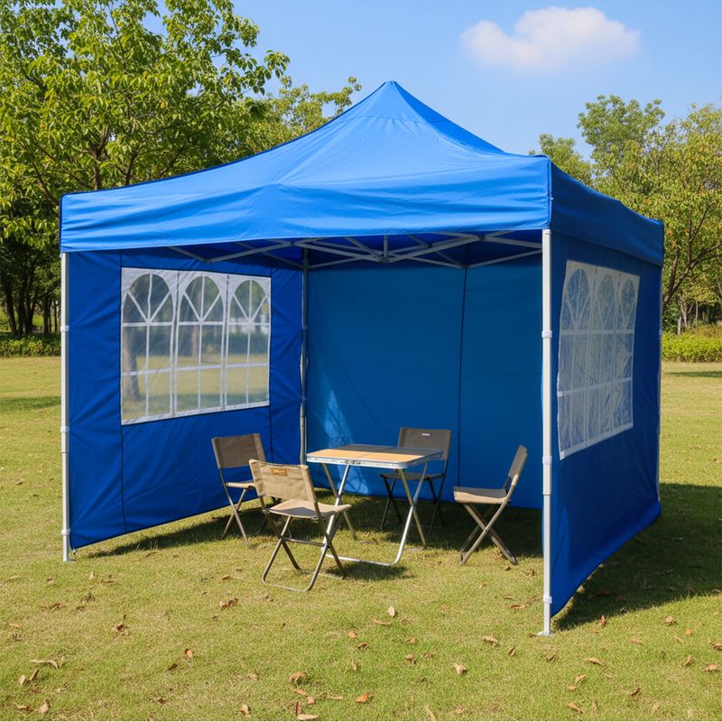Gazebo Exterior Plegable 3 Paredes Patio Jardín 300x300 Azul