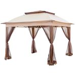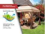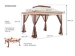 Gadnic te mantentiene fresco con nuestra nueva rejilla de ventilación, diseñada para proporcionar un excelente flujo de aire mientras trabajas o te relajas gracias a su parte superior ventilada y su extensa área de sombra. Este gazebo cuenta con patas rectas de acero y una estructura de cornisa extendida alrededor de los aleros de la tienda, proporcionando una cobertura adicional de sombra. Las dimensiones superiores de 3.35 x 3.35 metros proporcionan 11.24 metros cuadrados de cobertura con un montón de espacio para 6 personas.