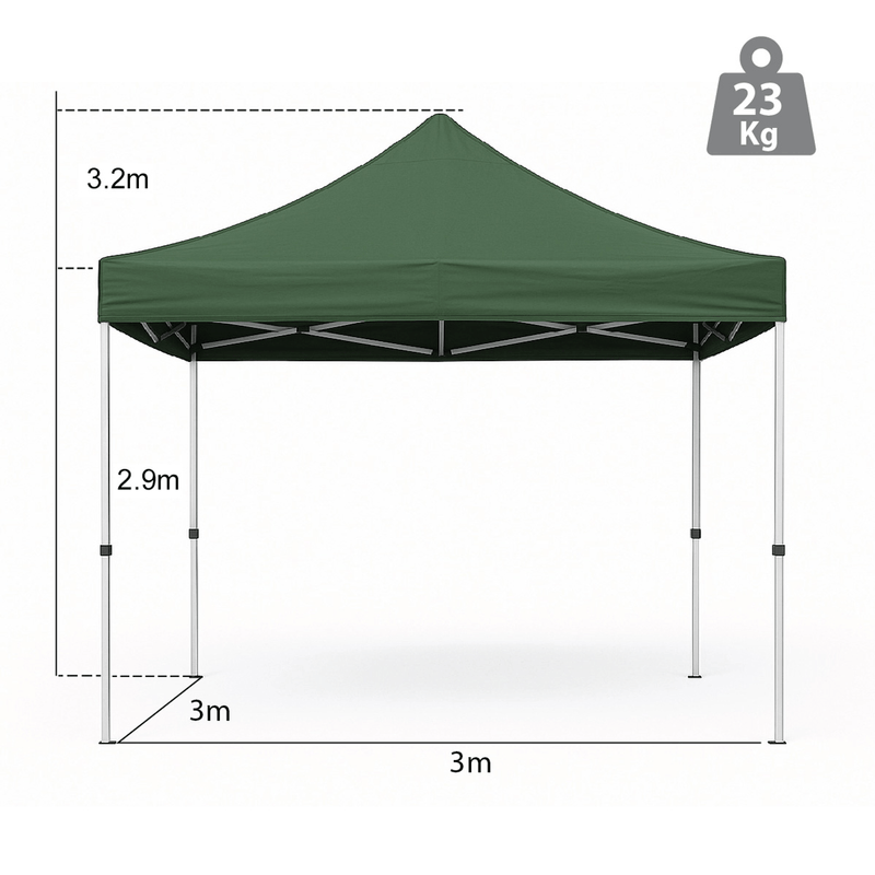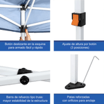Protegé tu espacio del sol y la lluvia con un gazebo 3x3 m robusto y preparado para uso intensivo: tela Oxford 420D con PVC, costuras termoselladas y estructura de acero para máxima durabilidad.