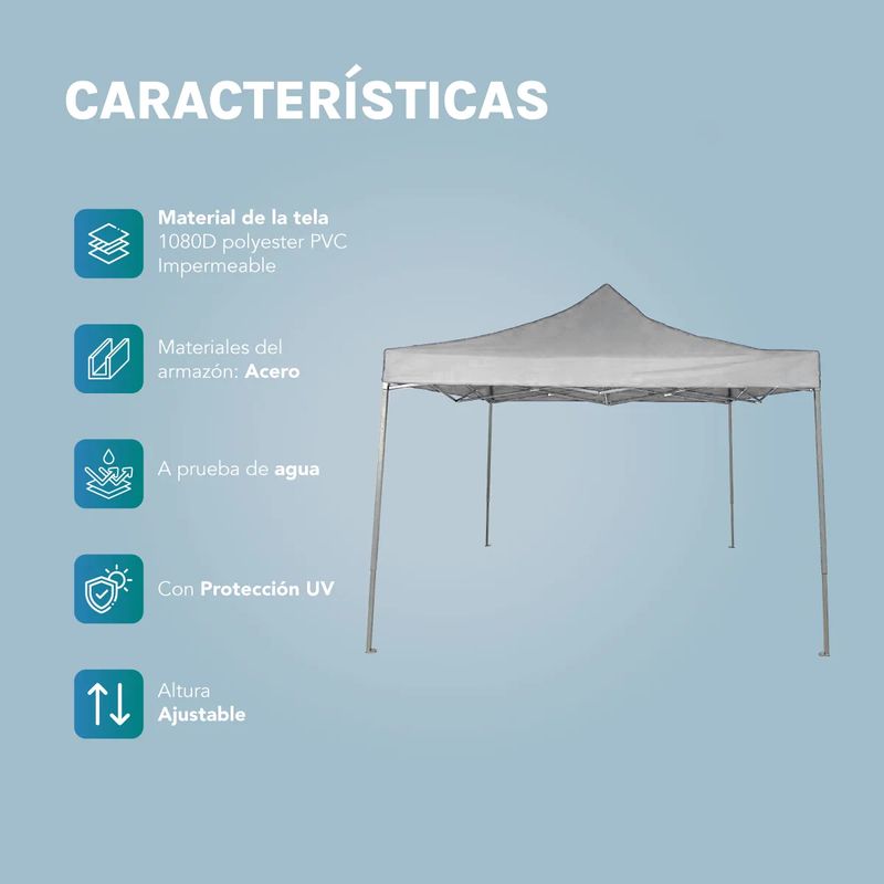 Este gazebo está diseñado para ofrecer una protección confiable gracias a su tela Oxford 1080D, reconocida por ser a prueba de agua. Este gazebo te ofrece un espacio amplio y cómodo para disfrutar al máximo.