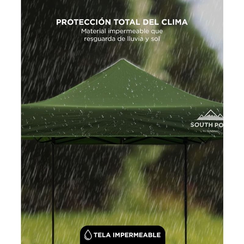 Equipado con una operación manual eficiente, nuestro gazebo se despliega y pliega con precisión y facilidad. Además, su impermeabilidad garantiza protección contra la lluvia, brindándote un espacio seco y cómodo en cualquier clima.