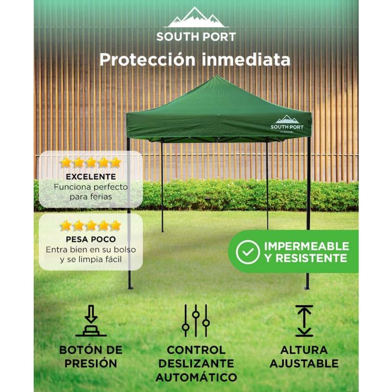 Con materiales de alta calidad, incluyendo tubos de acero reforzado, nuestro gazebo asegura durabilidad y resistencia. El botón de presión y el control deslizante automático agilizan el proceso de instalación, brindándote una estructura estable y segura.