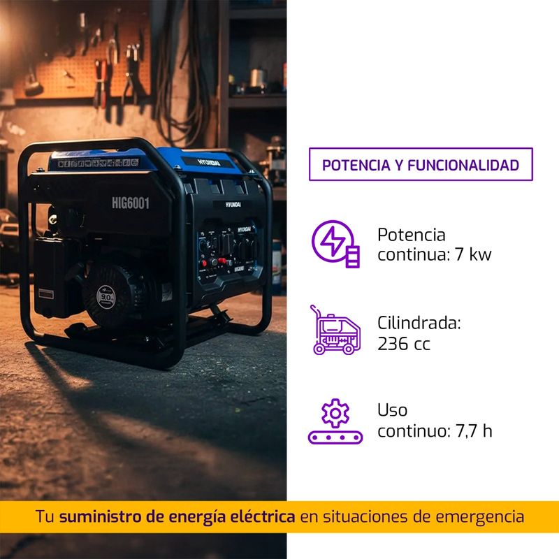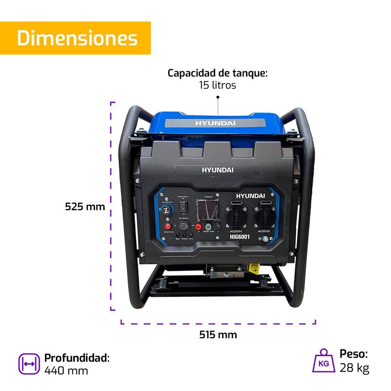 Generador Inverter Abierto 8kW Hyundai HIG6001