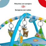Incluye: tapete ilustrado, dos arcos desmontables, cuatro juguetes colgantes y manual de armado rápido.