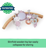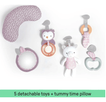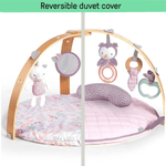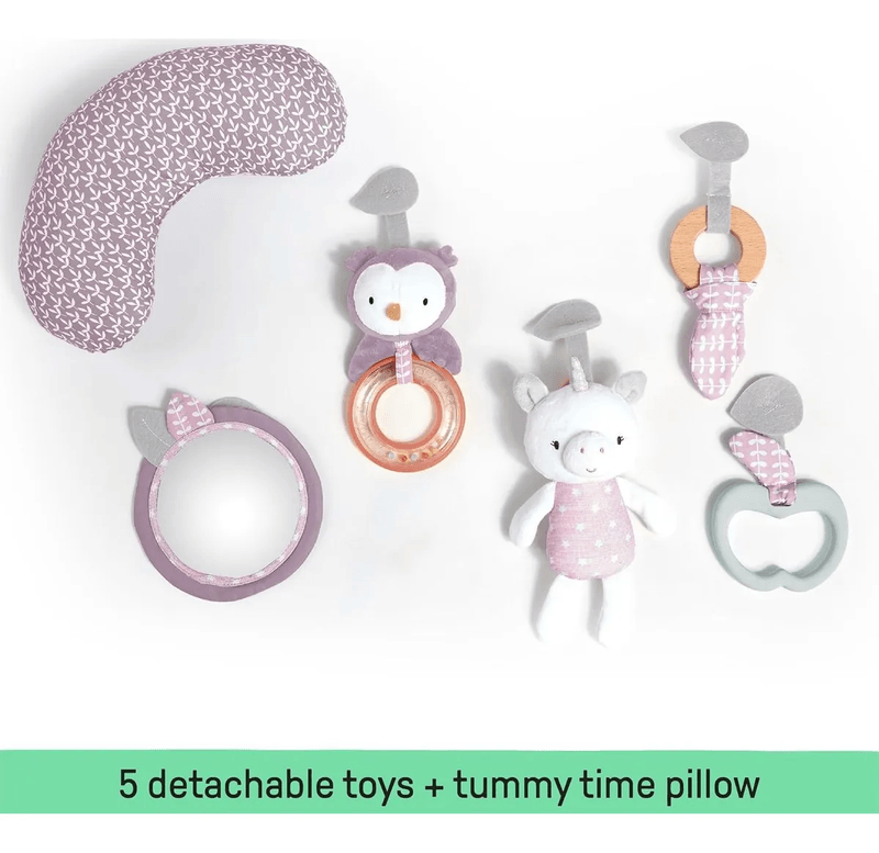 Incluye texturas, colores suaves y juguetes interactivos que acompañan al bebé durante sus momentos de juego. Además, su plegado compacto permite transportarlo y guardarlo fácilmente.