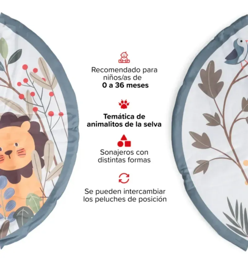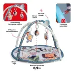 - Desarrollo Motor: Los juguetes colgantes y la alfombra acolchada fomentan el gateo, el estiramiento y el fortalecimiento de los músculos, apoyando el desarrollo motor y la coordinación.