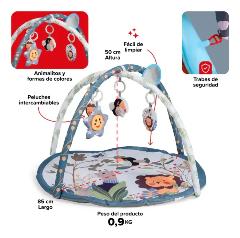 Transforma el tiempo de juego en una exploración emocionante y educativa con nuestro Gimnasio de Actividades. Diseñado para estimular los sentidos y apoyar el desarrollo motor de tu bebé, este gimnasio es el lugar perfecto para que descubran, jueguen y crezcan.