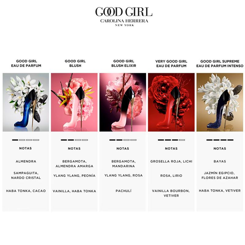 Descubrí la pura tentación con Very Good Girl Elixir, una interpretaciónsensual y más intensa de Very Good Girl, presentada en un seductorfrasco con un degradado de rojo a negro. Una potente mezcla de cerezanegra, rosa roja y vainilla hace que esta nueva y audaz Good Girl seamás adictiva que nunca.