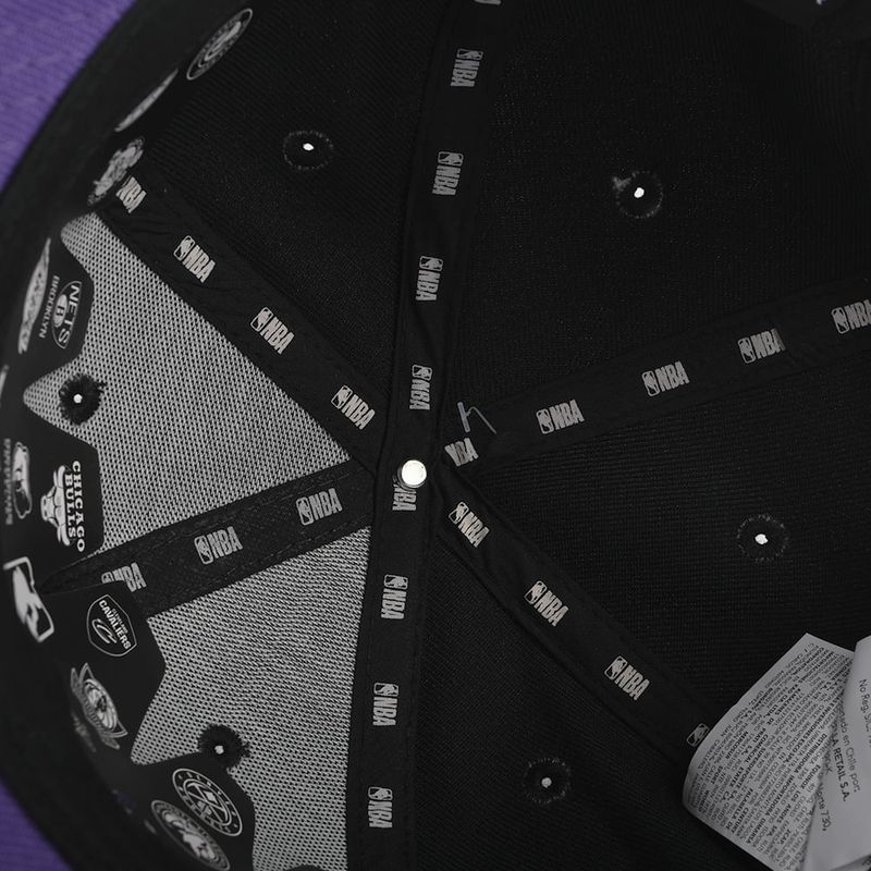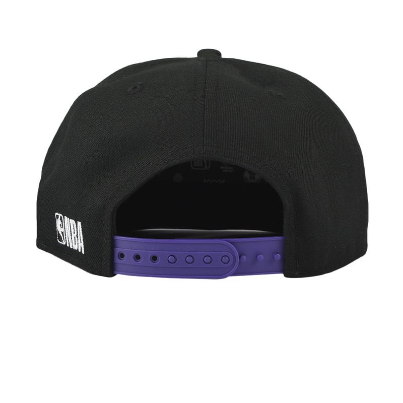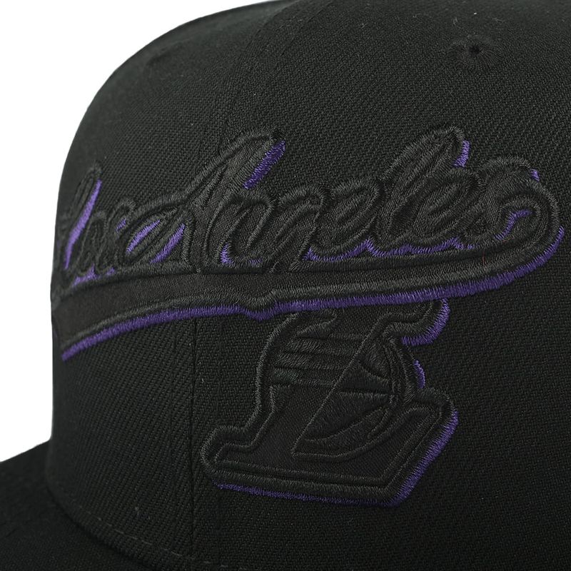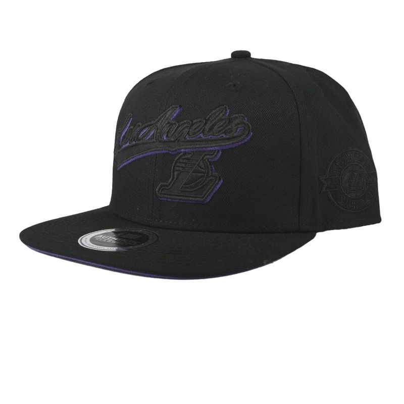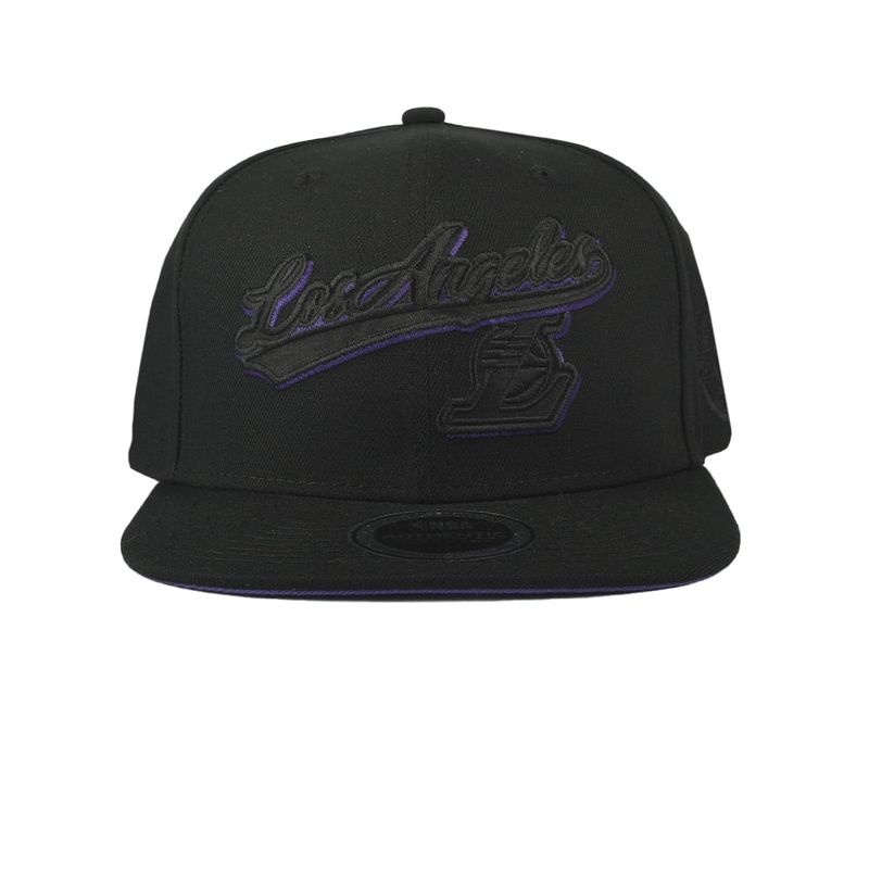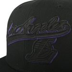 NBA WORDMARK SATIN AND EMBROIDERY PLACEMENT FITTED FLAT CAP - BLACK1, LOS ANGELES LAKERS