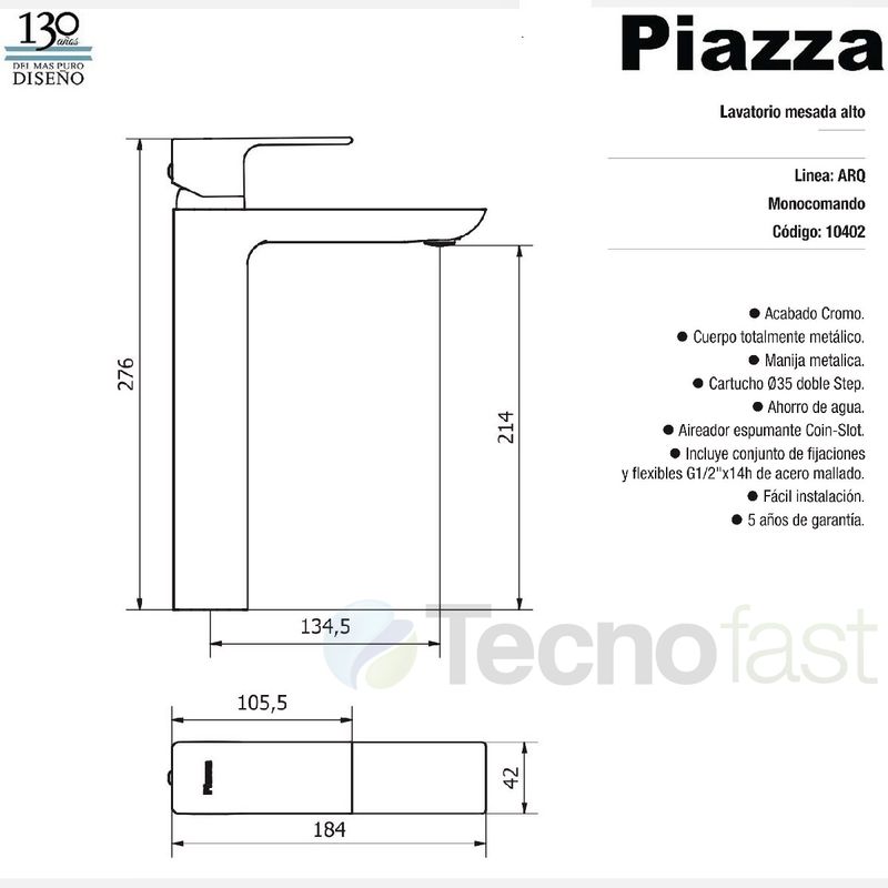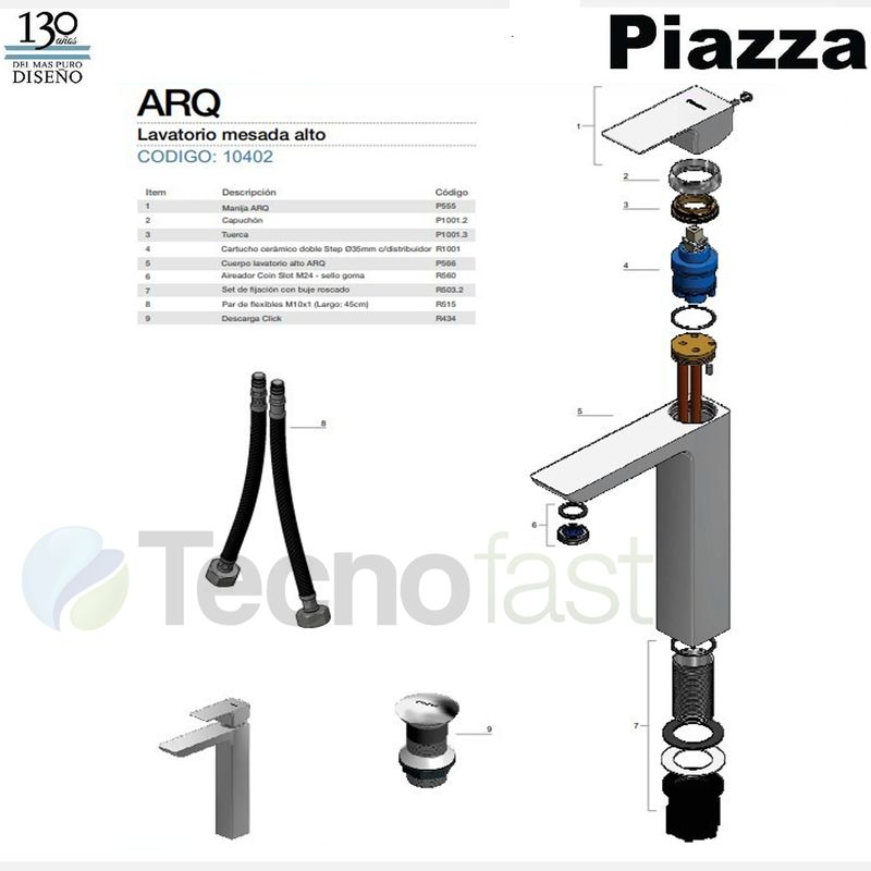 Griferia Baño Piazza Arq 10402 Lavatorio Alto Monocomando