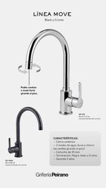 Los grifos de la marca Peirano tienen como respaldo más de 85 años de trayectoria en el rubro sanitario. Además, cuentan con calidad certificada ISO 9001. Este modelo Move 20-146 es una solución para darle un toque diferente a tu cocina.