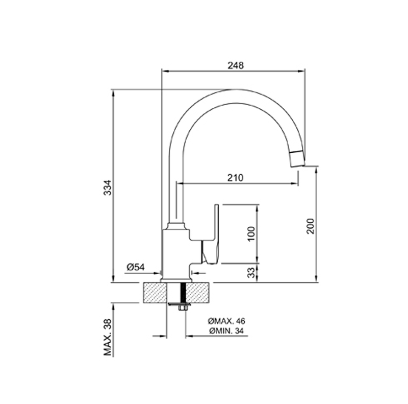 Base del monocomando: mínimo Ø 34 mm, máximo Ø46