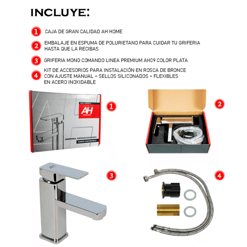 AH HOME, es una marca nueva griferias en Argentina, ha desarrollo dos lineas diferentes, llegando a dos calidades de excelente calidad, con diferentes precios, la linea premium, esta fabricada en Acero Inoxidable y es la mas cara, mas resistente y con mas durabilidad y la linea Metal, fabrica en aleacion, es la linea mas economica.
