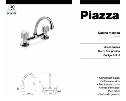 GRIFERÍA DE COCINA PIAZZA MESADA LINEA OPTIMA CROMO
