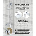 Componentes: Cabezal fijo, ducha de mano, barra vertical, manguera y soportes