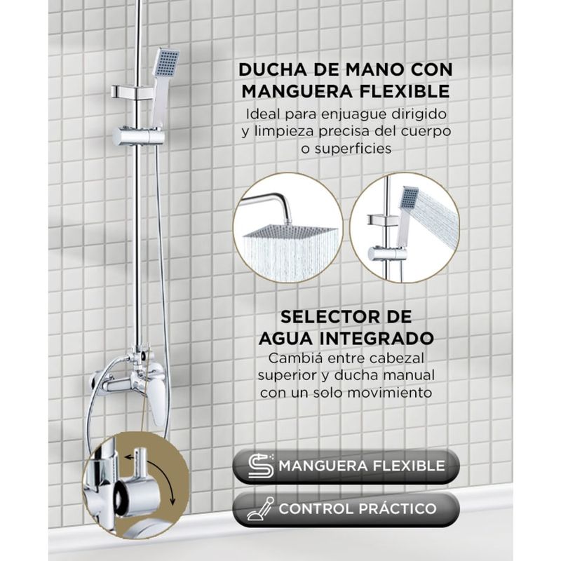 Elegí entre el cabezal tipo lluvia o la ducha de mano según cada necesidad. Ideal para una experiencia completa y personalizada en el baño.