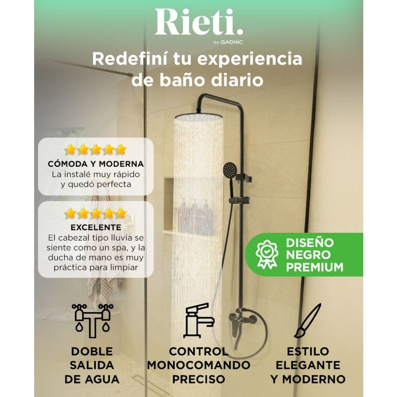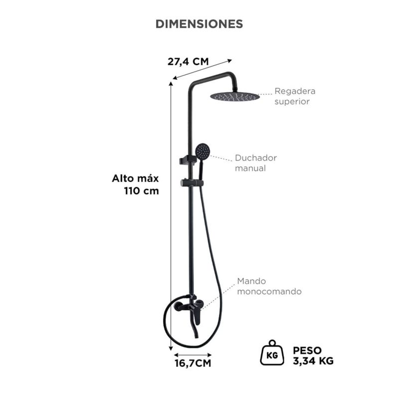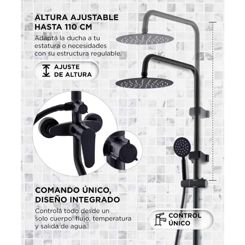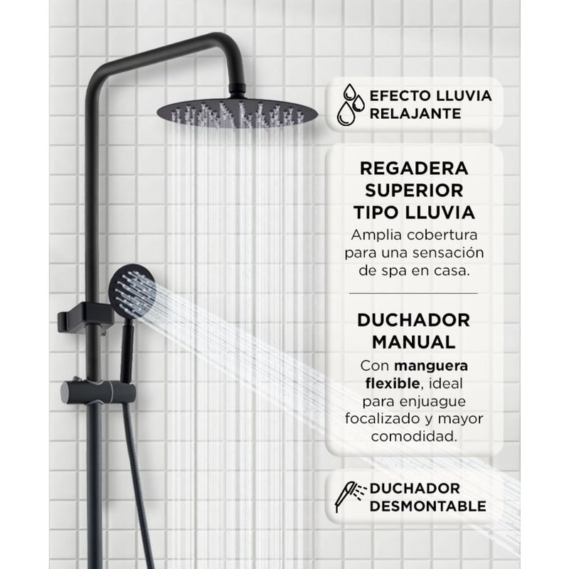 Incluye regadera tipo lluvia y duchador manual con manguera, para una experiencia completa y flexible.