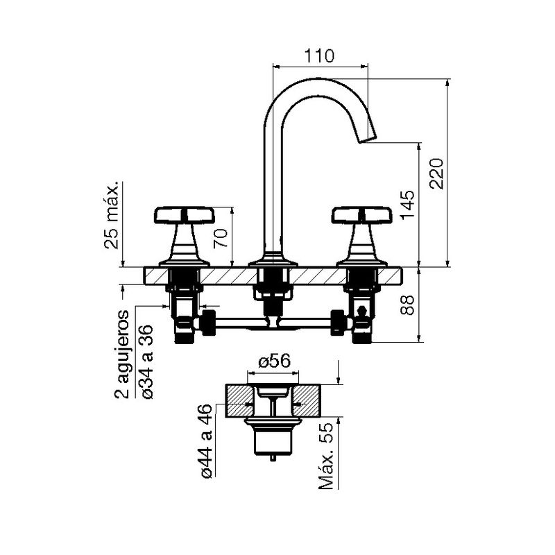 Grifería Fv Lavatorio Mesada Petalo Cromo 0207/M3-CR