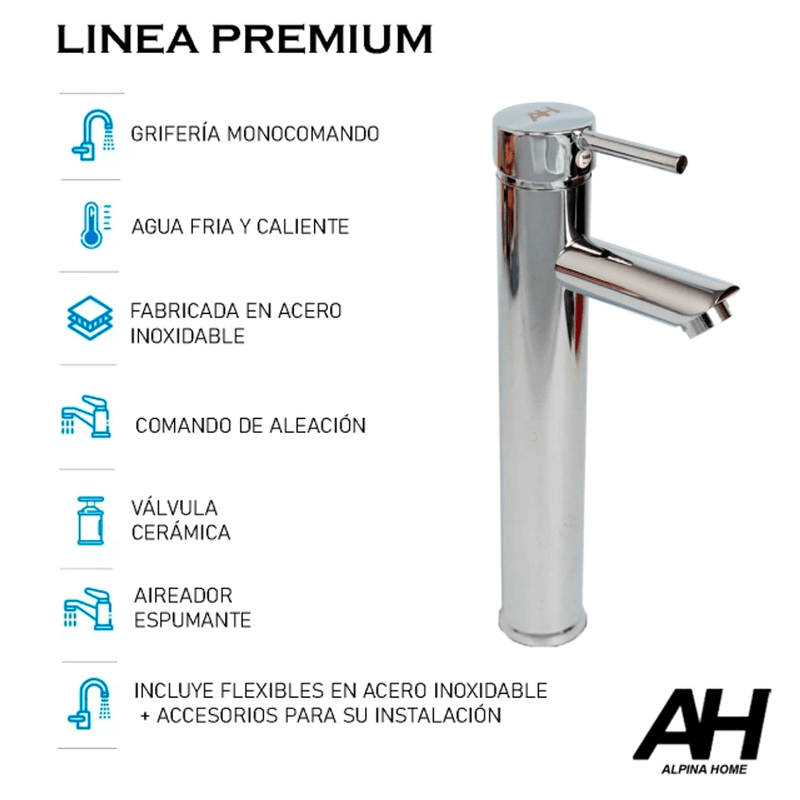 AH HOME, es una marca nueva griferías en Argentina, ha desarrollo dos líneas diferentes, llegando a dos calidades de excelente calidad, con diferentes precios, la línea premium, está fabricada en Acero Inoxidable y es la más cara, más resistente y con más durabilidad y la línea Metal, fabrica en aleación, es la línea más económica.