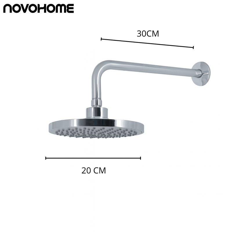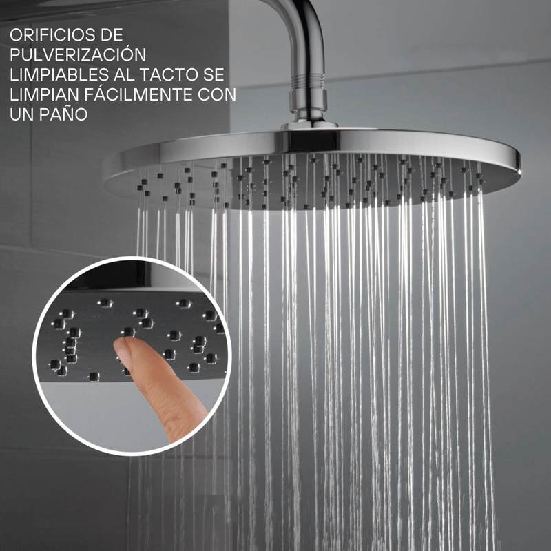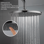 - Rociador de ducha: Cabezal redondo de 8 pulgadas en ABS, con brazo de ducha de acero inoxidable