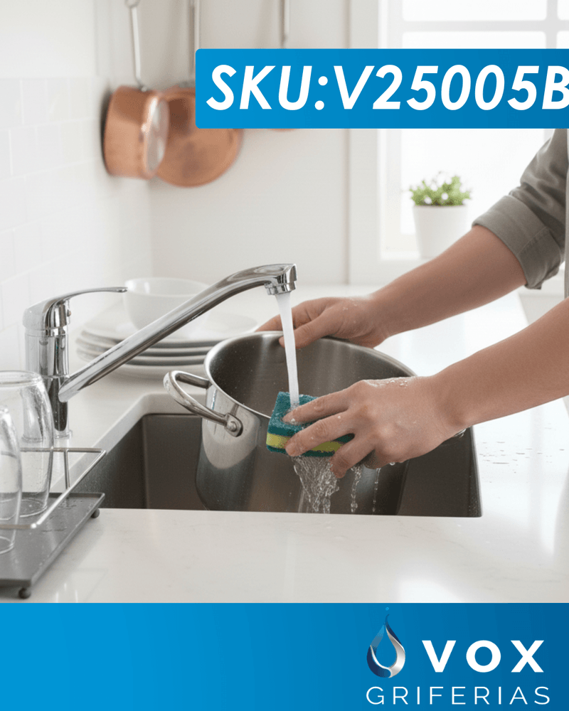 Sin dudas, la cocina es uno de los lugares más transitados de la casa y, por ello, es muy importante elegir la grifería que se adapte a las necesidades de uso. La marca VOX GRIFERIAS ofrece un diseño cómodo y práctico que te permitirá regular la salida de agua cuando laves platos, cocines, etc.