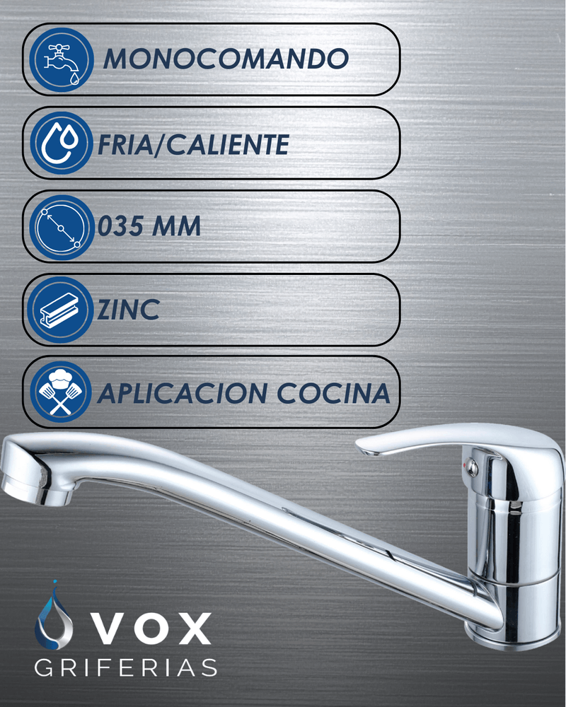 RenovaciónCocinaGriferíasGrifería Para Cocina Monocomando De Zinc Vox Griferias 035mm