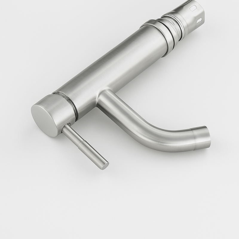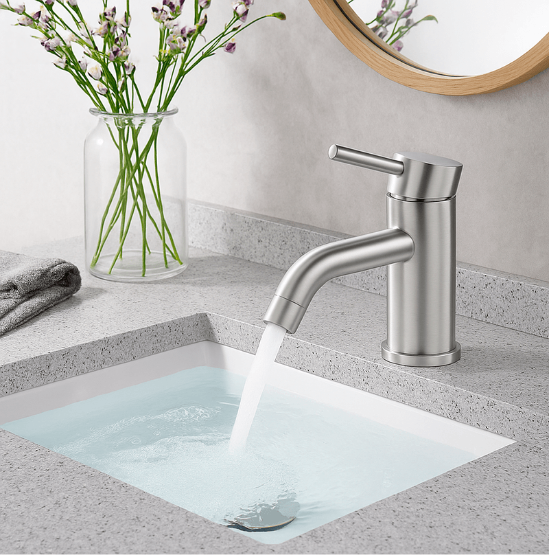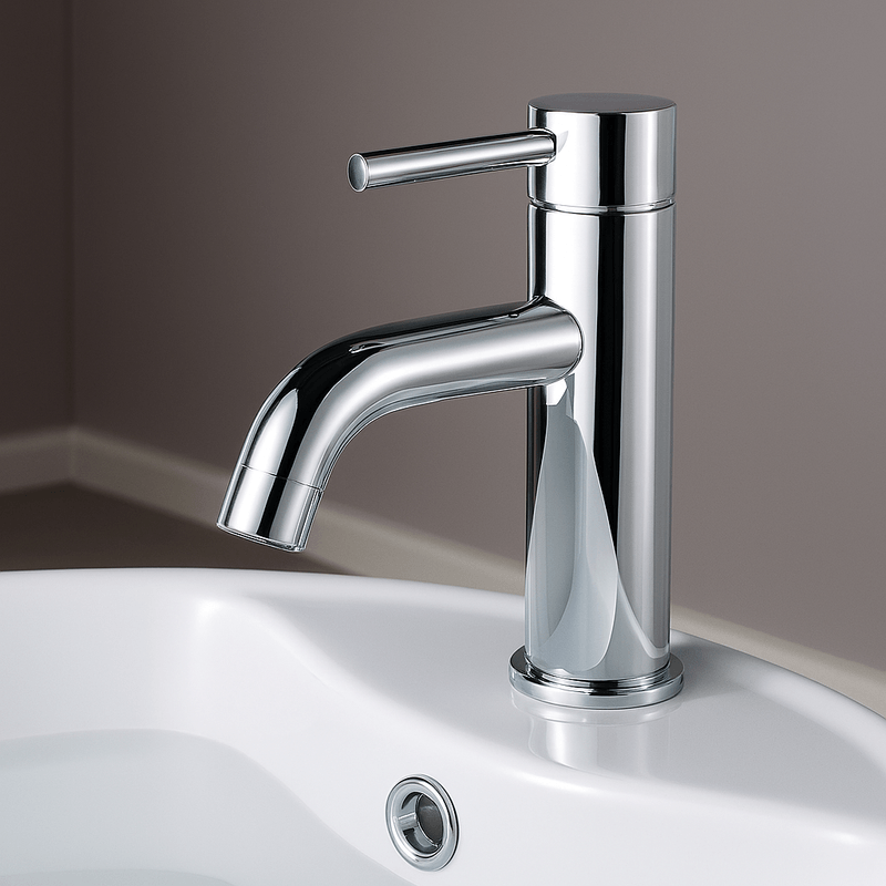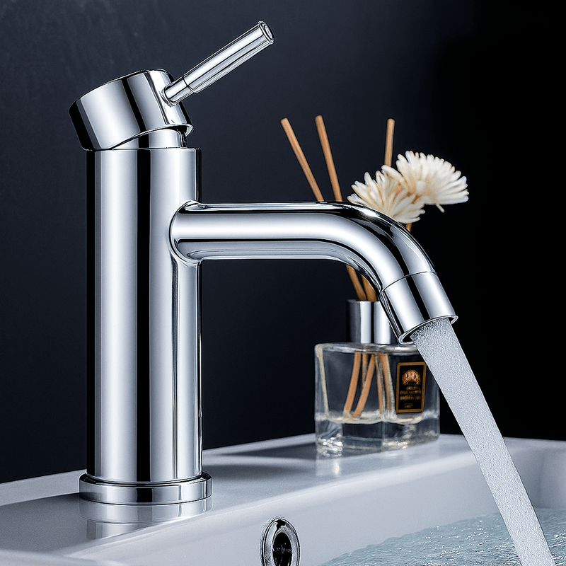 Grifería monocomando de diseño moderno y cilíndrico ideal para lavabos de baño. Fabricada en acero inoxidable 304, ofrece alta resistencia a la corrosión y durabilidad, además de un acabado cromo que le aporta una estética elegante y contemporánea.