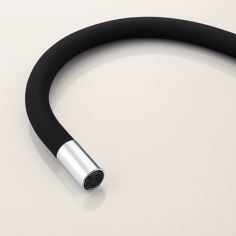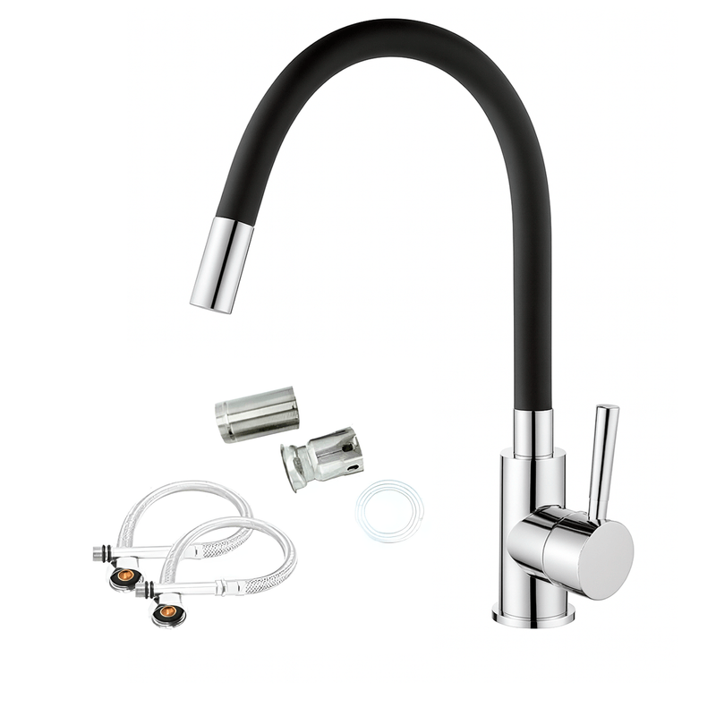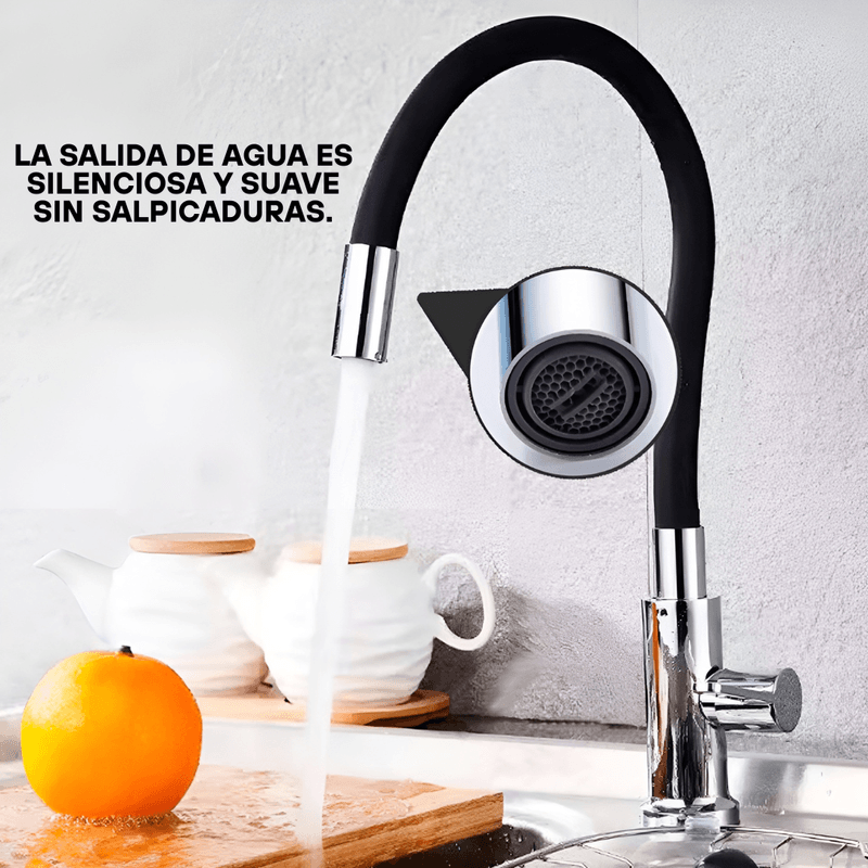 Fabricada con materiales de alta calidad, combina la resistencia del latón cromado con la versatilidad de un pico flexible, garantizando durabilidad y un estilo contemporáneo que se adapta a cualquier ambiente de cocina.
