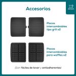 • Capacidad: Proporciona una amplia superficie de cocción al desplegarse 180 grados.