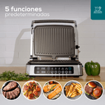 • Cocina a tu medida: Ajustá la temperatura y el tiempo de cocción para lograr resultados precisos en tus carnes, verduras y sándwiches.