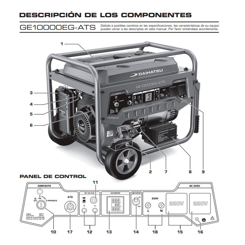 naftero/gas de 18HP garantiza un funcionamiento eficiente y confiable.