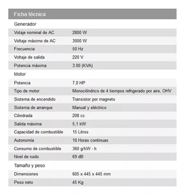 - Consumo mínimo de combustible 360g/KW-H