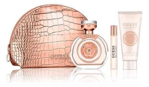 Set que incluye una Eau de Toilette de 100 ml, crema corporal de 100 ml y spray de viaje de 15 ml, con una fragancia femenina y romántica, ideal para cualquier ocasión.
