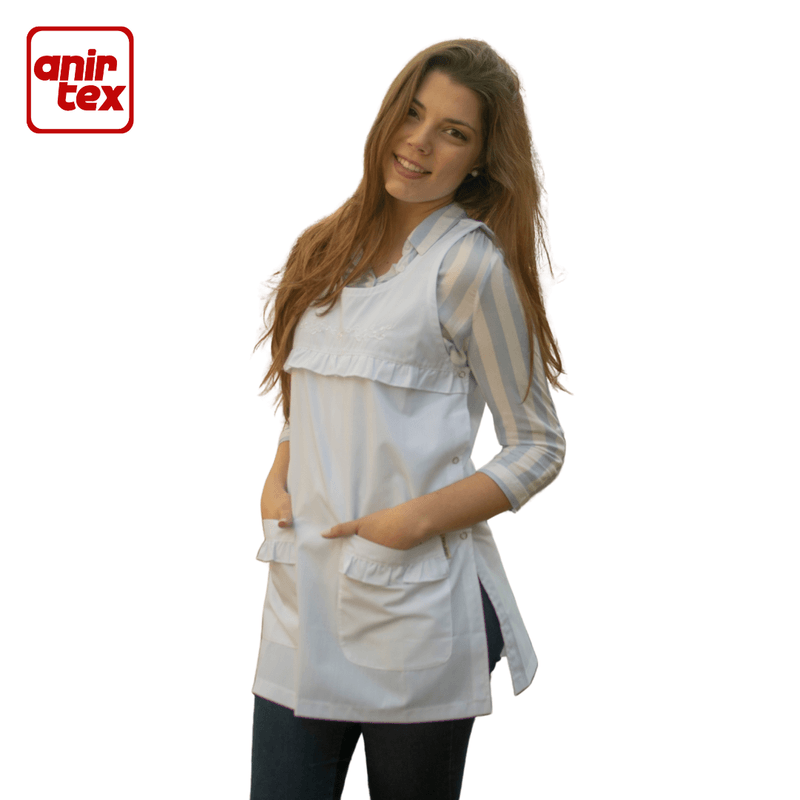 Guardapolvo sin mangas ANIRTEX Línea Docente, ideal para trabajar cómoda y elegante. Protege tu