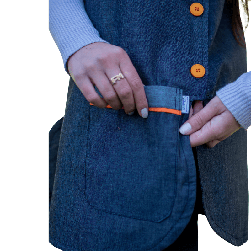 Guardapolvo sin mangas ANIRTEX Línea Docente, ideal para trabajar cómoda y elegante. Protege tu