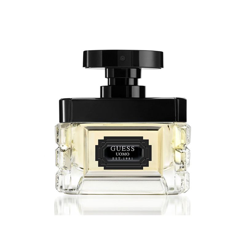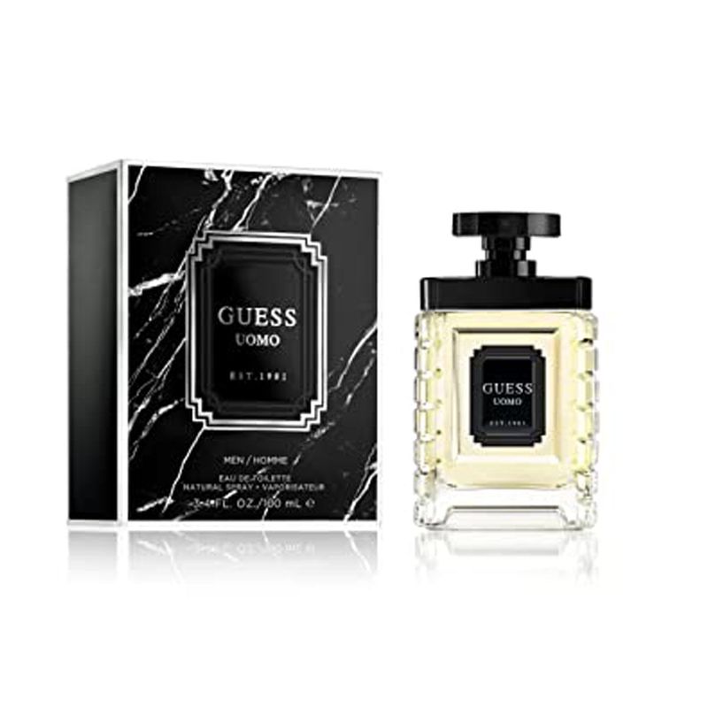 GUESS UOMO Eau de Toilette es una fragancia de fugere ámbar de múltiples caras para hombres con un clásico fougere mezclado con sensual madera oscura.