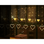 Cortina de luces LED en forma de corazones, una opción encantadora y versátil para transformar cualquier ambiente en un espacio cálido y lleno de magia. Con una luz cálida amarilla que crea una atmósfera acogedora, esta cortina cuenta con 8 modos de iluminación diferentes para que puedas elegir el efecto perfecto según la ocasión: desde un parpadeo suave y romántico hasta una luz continua ideal para decorar con estilo.