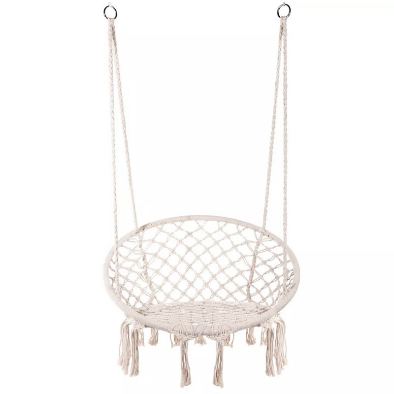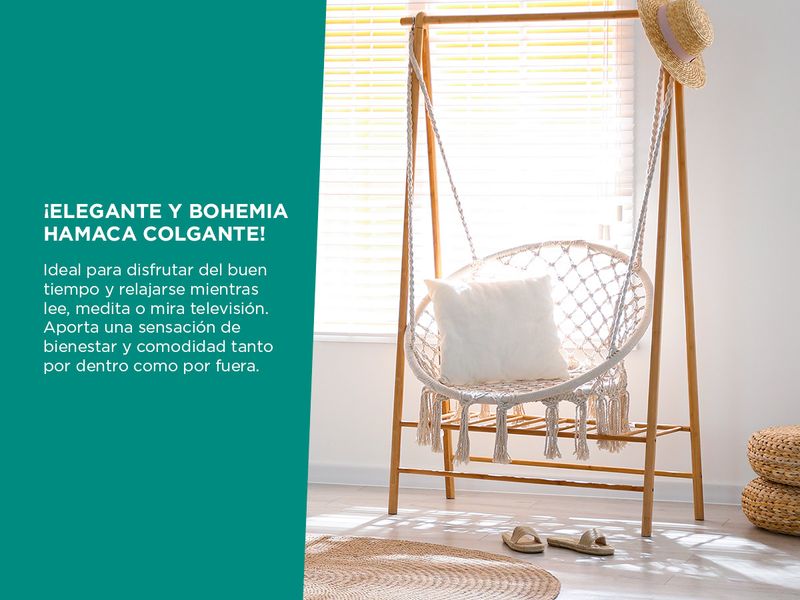 Gadnic te ofrece una silla hamaca colgante ideal para disfrutar del buen tiempo y relajarse mientras lee, medita o mira televisión. Aporta una sensación de bienestar y comodidad tanto por dentro como por fuera.