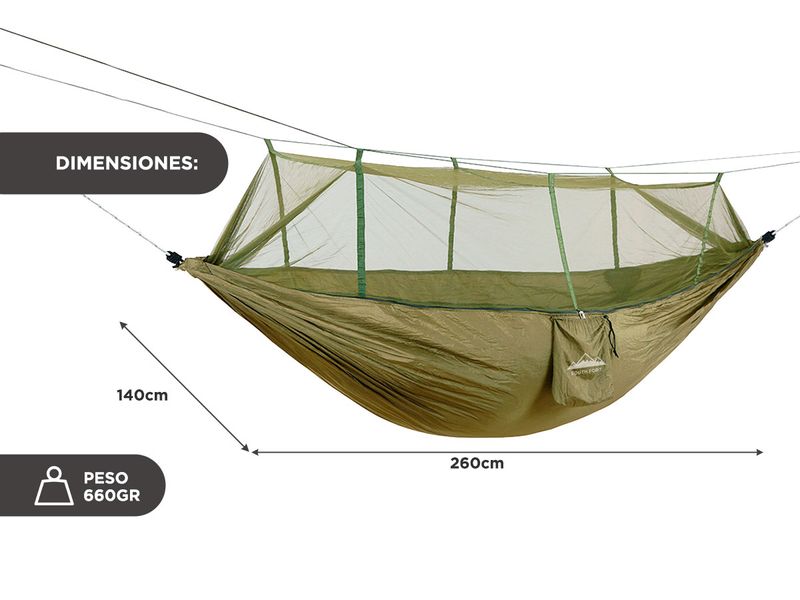 Tamaño de la hamaca: 260 x 140 cm (Largo x Ancho)
