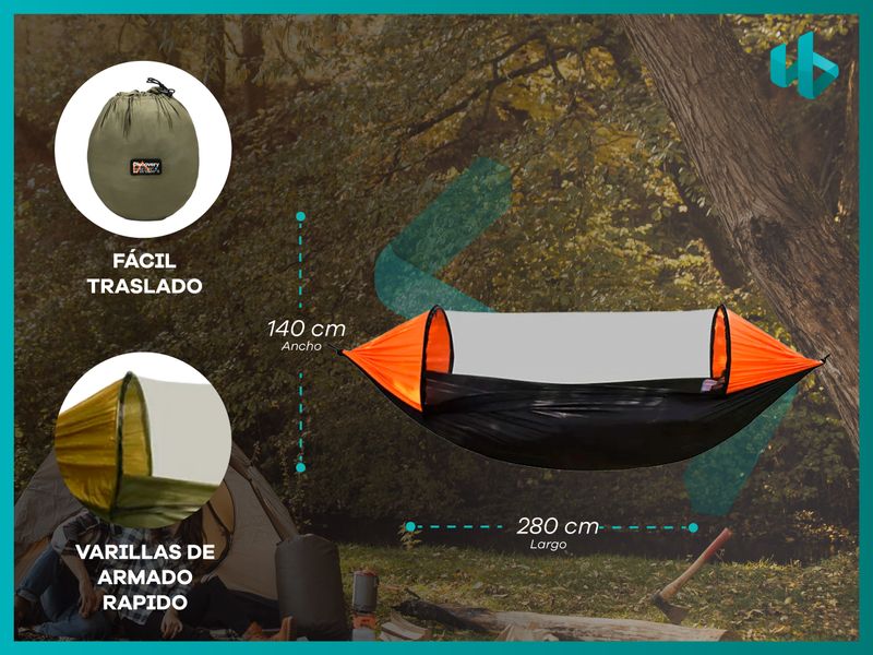1 hamaca paraguaya con sistema de varillas de apertura automática y mosquitero incorporado.
