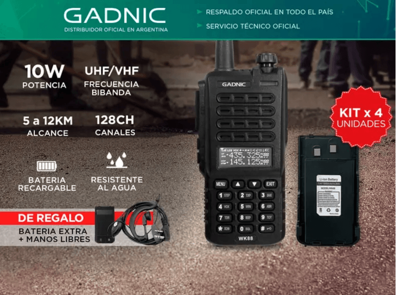 El Handy cuenta con doble banda y función dual standby, operando en frecuencias de 136-174 MHz y 400-480 MHz. Ofrece una capacidad de 128 canales, permitiendo diversas opciones de comunicación. La separación entre canales se ajusta a 5, 6.25, 12.5 o 25 KHz, asegurando una transmisión clara y sin interferencias. Con una potencia de 10 watts, proporciona un rendimiento robusto, y su rango de comunicación entre dos handys varía de 5 a 12 km, ideal para múltiples situaciones.