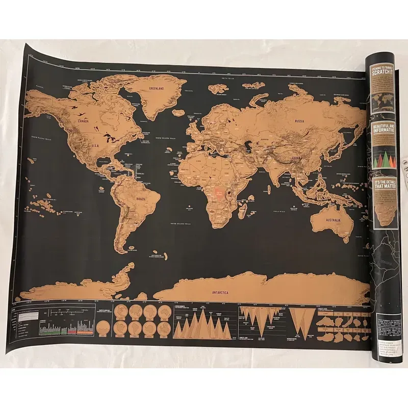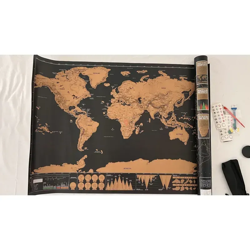 Fabricado en papel o cartulina plastificada, este mapa es duradero y fácil de mantener. Su diseño permite rascar los países que has visitado, convirtiéndolo en un excelente recordatorio de tus aventuras. Además, su presentación sin marco facilita su colocación en cualquier lugar que desees.