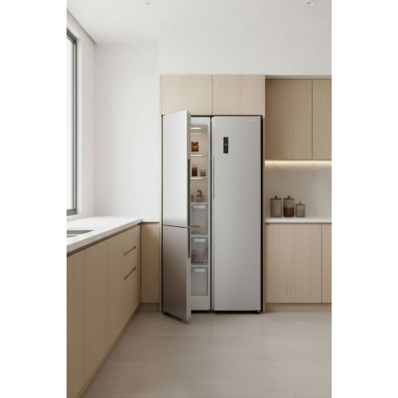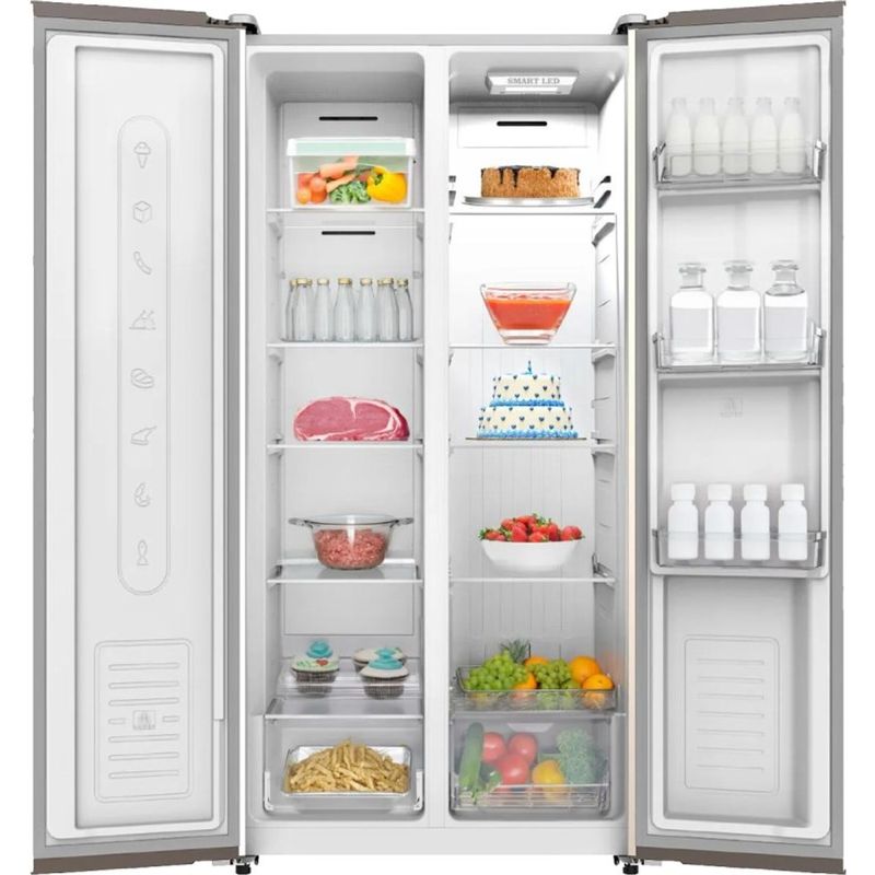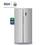 HELADERA NO FROST HEL 397L BRS400I1A SBS INOX B.G.H -Numero Certificado: EA 4189556 EE -Tipo de Heladera: SIDE BY SIDE -Escarchado del frezzer: NO FROST -Capacidad Total: (Lts)397 -Capacidad Refr. (Lts)232 -Capacidad Refr. Rapido/Chill (Lts)0 -Capacidad Congel. 4 Estrellas (Lts)153 -Capacidad congel. 2 Estrellas (Lts)12 -Tipo Climatico: SN-T -Color: INOX -Alimentación (V~) 220 -Frecuencia (Hz)50 -Corriente nominal (A)1,8 -Potencia de descongelamiento (W)250 -Autonomía en horas (h)8 -Capacidad de congelamiento (Kg/24h)7 -Gas refrigerante: R600a -Carga de gas refrig. (Kg)0,074 -Clase de Eficiencia Energética: A+ -Consumo mensual (kWh/año)360 -NO FROST -COMPRESOR INVERTER -DISPLAY DIGITAL -Producto: Ancho (cm)83,6 Alto (cm)171,2 Profundidad (cm)61 Peso Neto (kg)66 -Packing: Ancho (cm)89,2 Alto (cm)177 Profundidad (cm)64,6 Peso bruto (kg)75 -MODELO: BRS400I1A -ORIGEN: China -GARANT+A: 12 mese